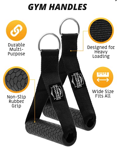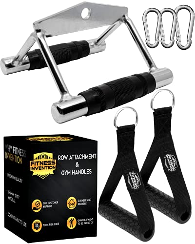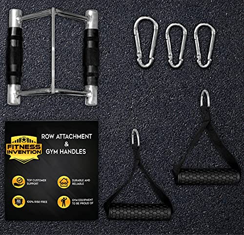 Fitness Invention - مقابض كابل تمارين من فيتنِس انفِنشن - مزدوج بشكل D – وصلة كابلات بشكل V، عدد 2 مقابض للجيم و3 خطافات – مقبض تمارين تجديف ضيق، وصلة تجديف بشكل T، مقبض كابلات بشكل V، ملحقات كابلات للجيم