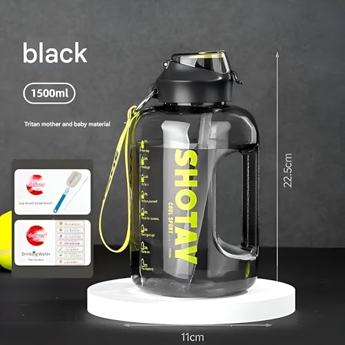 Generic - زجاجة مياه للياقة البدنية، زجاجة شرب مقاومة للصدمات بسعة 1.500 لتر مع مقبض حمل وغطاء مضاد للتسرب وتذكير بالترطيب للجيم والأنشطة الخارجية