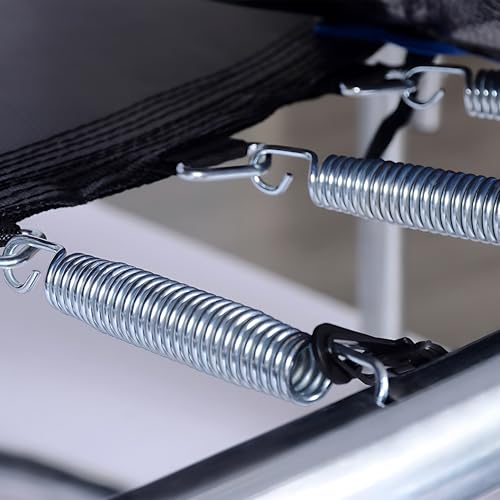 - هيكل شديد التحمل - مصنوع من إطار صلب مجلفن وسجادة قفز مقاومة للطقس، تم تصميم هذا الترامبولين ليدوم موسمًا بعد موسم، ويتحمل جميع الظروف الجوية.