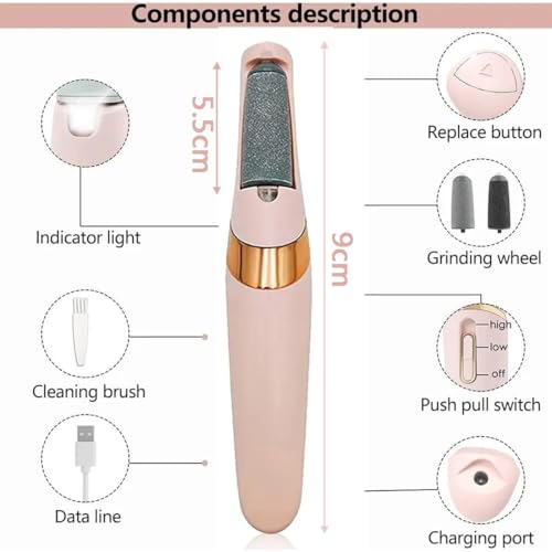 - *طاقة قابلة لإعادة الشحن: مزيل مسامير القدم الكهربائي هذا مجهز بنظام طاقة قابل لإعادة الشحن، مما يضمن استخدامًا وراحة تدوم طويلاً. مثالي لجلسات الباديكير أثناء التنقل.