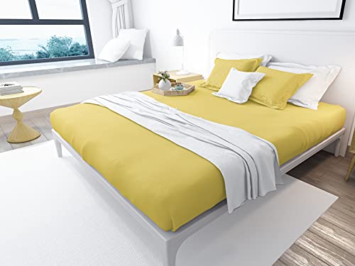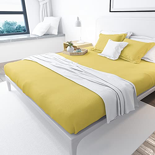 بد اند هوم BedNHome - طقم ملاية بأستيك, 180x200سم, اصفر، من بد اند هوم، نسيج قطن، سادة، كينج