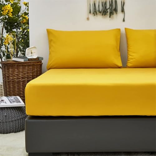 Snooze - طقم ملاية سرير بأستك، أصفر مسطردة، 1 × 2 م، قطعتان