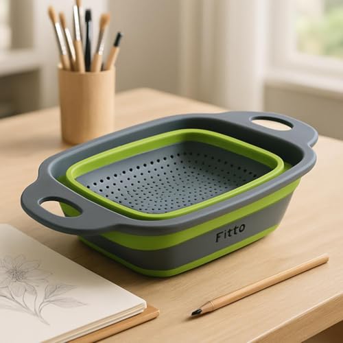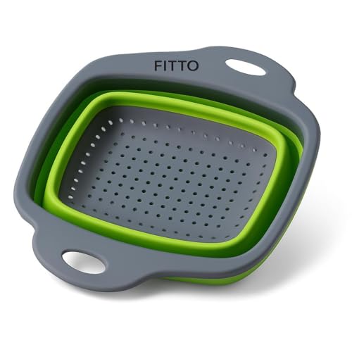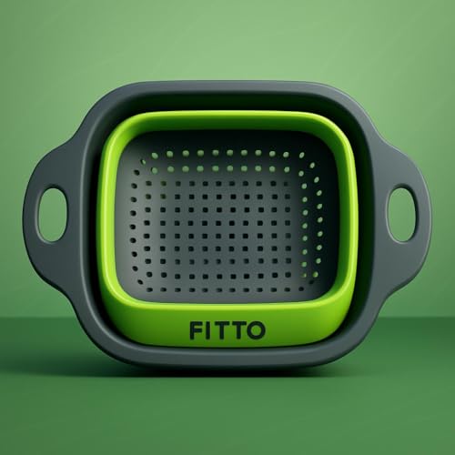 FITTO - سلة غسيل الفواكه والخضروات قابلة للطي من فيتو، مصفاة سيليكون محمولة قابلة للطي مع مقبض - أدوات مطبخ لسهولة التنظيف والتصريف