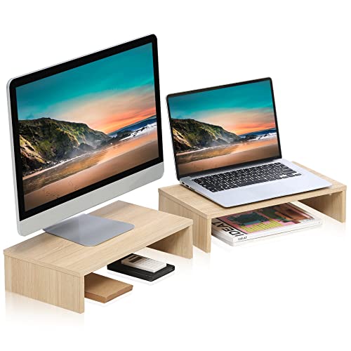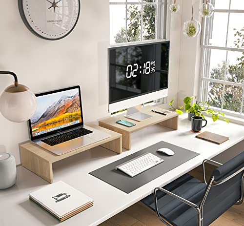 FITUEYES - حامل شاشة مزدوج - حامل شاشة كمبيوتر 16.7 بوصة، لسطح المكتب للكمبيوتر واللاب توب والطابعة وشاشة التلفزيون، لوازم المكتب المنزلية، منظم المكتب من خشب البلوط، قطعتان من فيت يو ايز