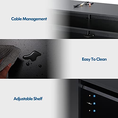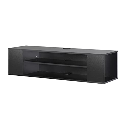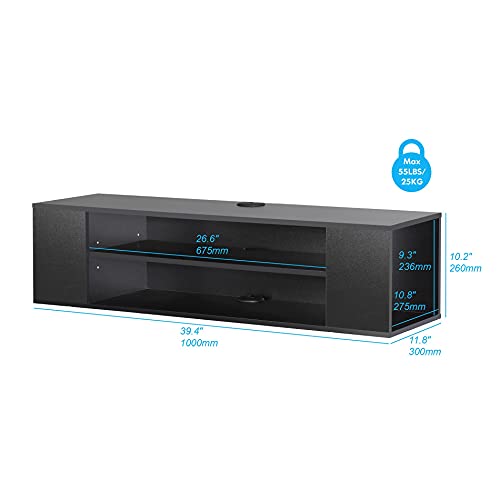 FITUEYES - وحدة تلفزيون تعلق وتثبت على الحائط بـ4 مساحات للتخزين ملائمة لغرفة المعيشة ومركز الترفيه من فيتيوايز، أسود
