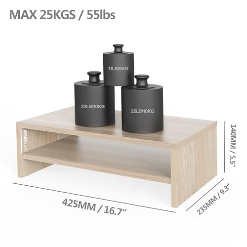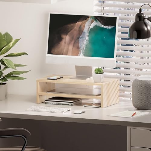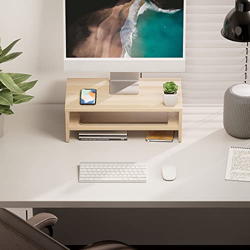 FITUEYES - حامل شاشة كمبيوتر بـ2 طبقة مع رف بطول 42.4 سم وحامل مكتب خشبي للابتوب وشاشة الكمبيوتر لتنظيم المكتب ومستلزمات المكتب من فيتو ايز