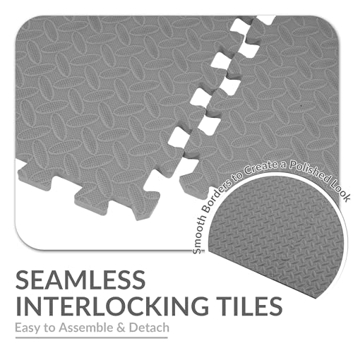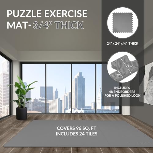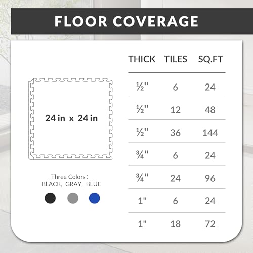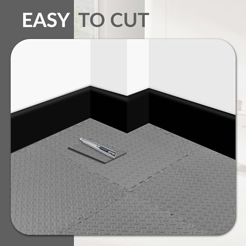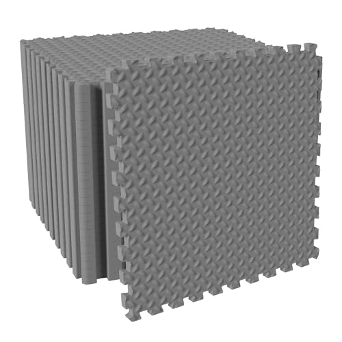 Fitvids - سجادة أرضية للجيم والتمارين بتصميم قطع أحجية، بلاط متشابك ايفا عالي الكثافة 1.9 سم، سجادة تمرين لجيم منزلي ومعدات لياقة بدنية وفنون قتال مختلطة وجمباز ممتصة للصدمات (8.9 م²) من فيتفدز، 24 قطعة