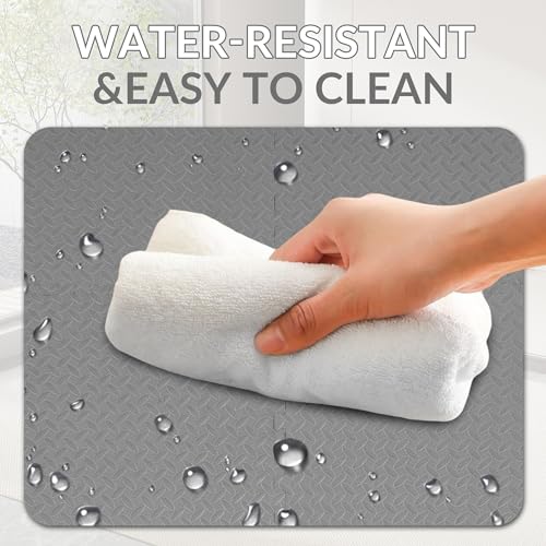 - حماية متعددة الأسطح مع سجادة تمارين الأحجية: مصنوعة من إسفنج ايفا غير السام عالي الكثافة، تحمي سجادات صالة الألعاب الرياضية هذه الأرضيات من الخدوش والأوزان وتأثيرات المعدات. يضمن السطح المنسوج غير القابل للانزلاق الثبات أثناء ممارسة التمارين الرياضية أو اليوجا أو رفع الأثقال، بينما يقاوم التصميم المقاوم للماء العرق والانسكابات لسهولة المسح