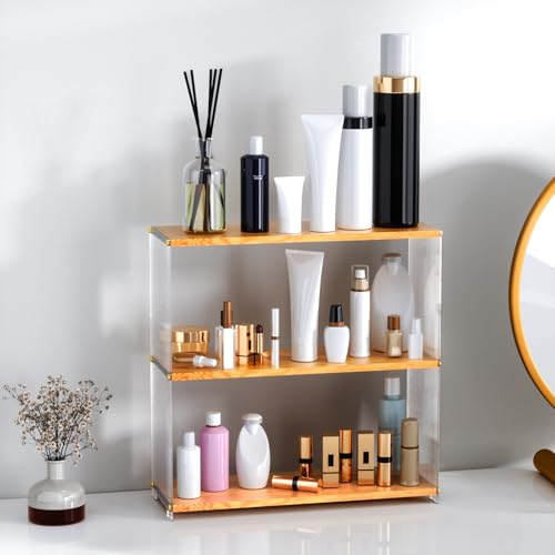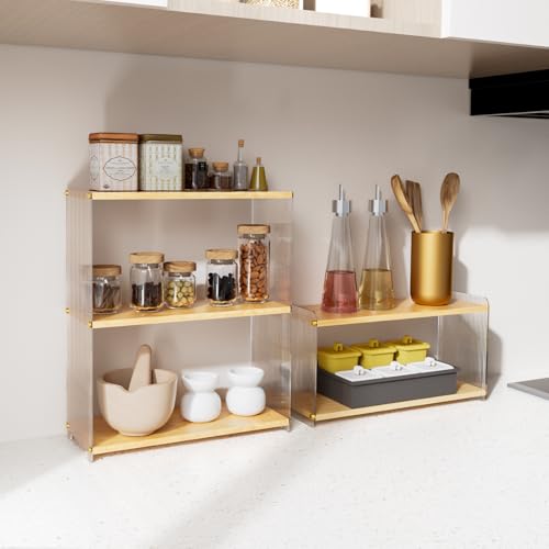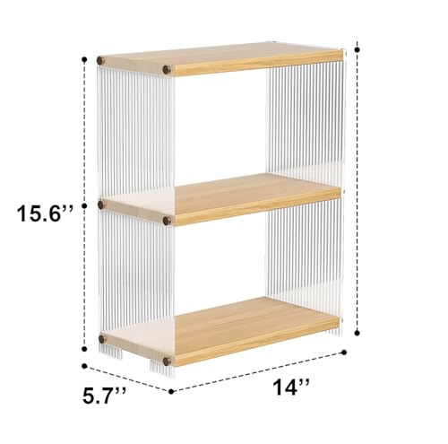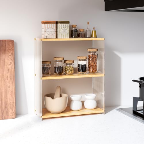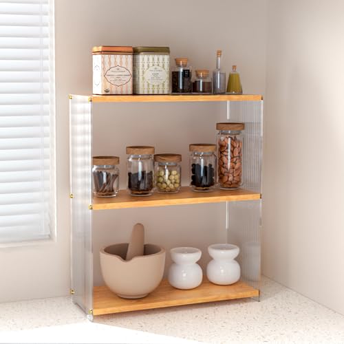 Fitzkor - منظم سطح المكتب من الاكريليك من فيتزكور، رف تخزين خشبي، رف للكتب، منظم مكتبي، ارفف توابل للمطبخ (3 طبقات)