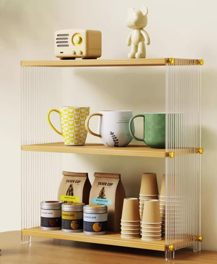 - توفير المساحة: تصميم سطح الطاولة الصغير يزيد من مساحة التخزين العمودية مع الحفاظ على سهولة الوصول إلى جميع الأكواب والأكواب المفضلة لديك