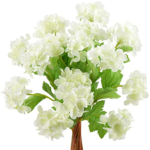 FiveSeasonStuff - باقة زهور هدرانج صناعية صغيرة مع اوراق من فايف سيزون ستاف 15 ساق بطول 32 سم مناسبة لحفلات الزفاف والحفلات ولتزيين المنزل والمكتب ولاغراض الديكور أبيض