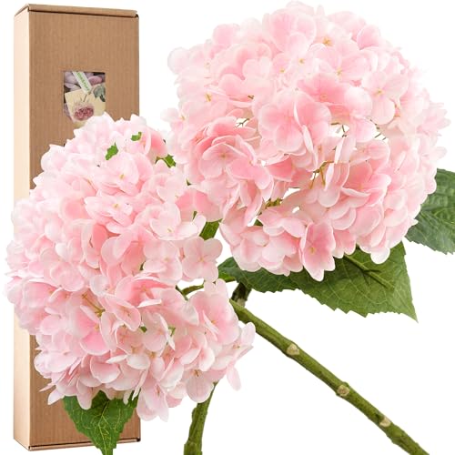 FiveSeasonStuff - ورود كوبية حريرية بملمس حقيقي وفرع طويل صناعي، قطعتين لباقات الورود من فايف سيزون ستاف (لون بينك)، زهري، عدد القطع: 2