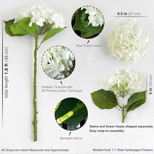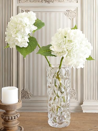 FiveSeasonStuff - زهور كوبية حريرية بملمس حقيقي من فايف سيزون ستاف، 2 زهرة صناعية كبيرة ذات جذع طويل لترتيبات الزهور (أبيض صيفي)
