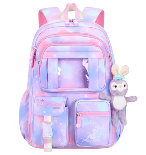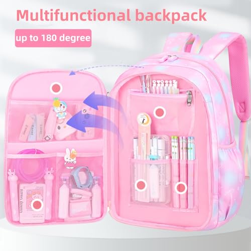 Fivister - شنطة ظهر للبنات مع مساحة تخزين، شنطة كتب للمدرسة الابتدائية من فايفيستر