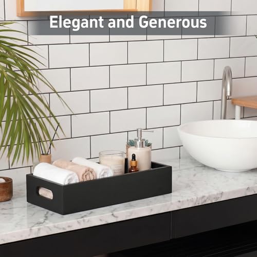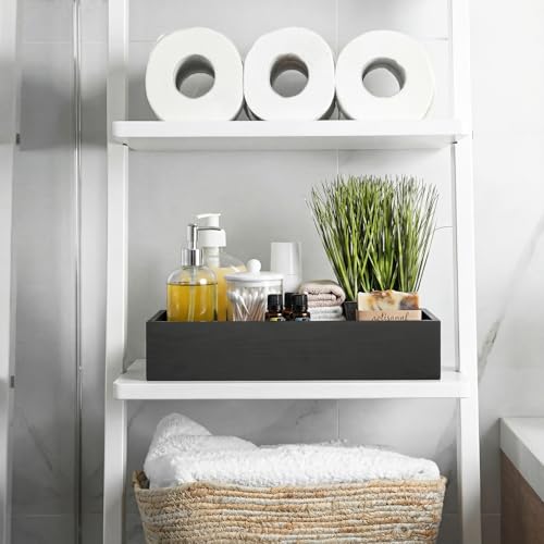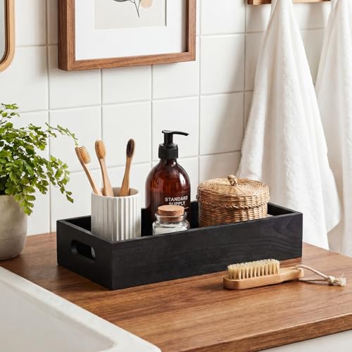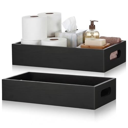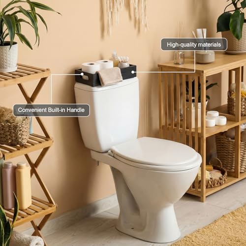 Fiwochic - سلة حمام خشبية من قطعتين من فيوشيك، سلة ورق تواليت بمقبض بلون اسود، صندوق ديكور للحمام الخلفي من المرحاض، منظم تخزين لغرفة النوم وطاولة الزينة والمطبخ ورف خزانة الملابس