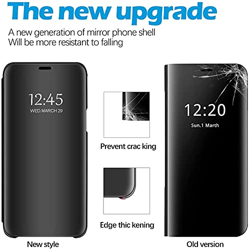 Fiyer - حافظة A54 لهاتف سامسونج A54 الجيل الخامس 5G قابلة للطي مع تأثير طلاء عاكس من البولي كربونات الصلب + جلد يوريثين لسامسونج جالاكسي A54 مسند 360 درجة غطاء مقاوم للصدمات لكامل الجسم أسود