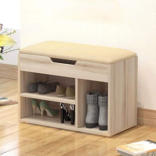 FJYDBTWJ - منظم رفوف أحذية، عبارة عن مقعد مقعد خشبي للأحذية ورف تخزين للمدخل، بتصميم كلاسيكي لجمع الأشياء المتنوعة من FJYDBTWJ بلون بيج مقاس D