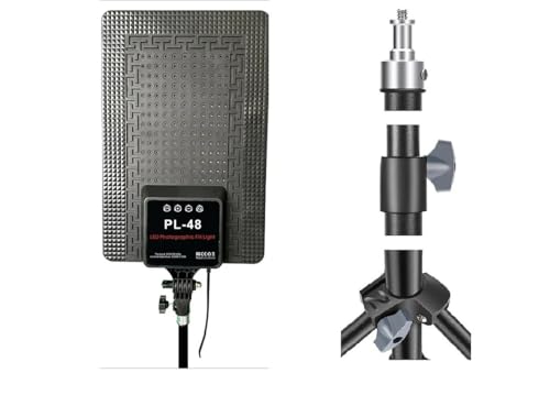 FKU - مصباح ليد للتصوير الفوتوغرافي PL-48 مقاس 48 سم بشاشة لمس كبيرة مع جهاز تحكم عن بعد وحامل ثلاثي القوائم، وميكروفون، ومشبك فائق، ودعامة شكل E من اف كيه يو (48 سم مصباح بانال يعمل باللمس + 2.13 م)