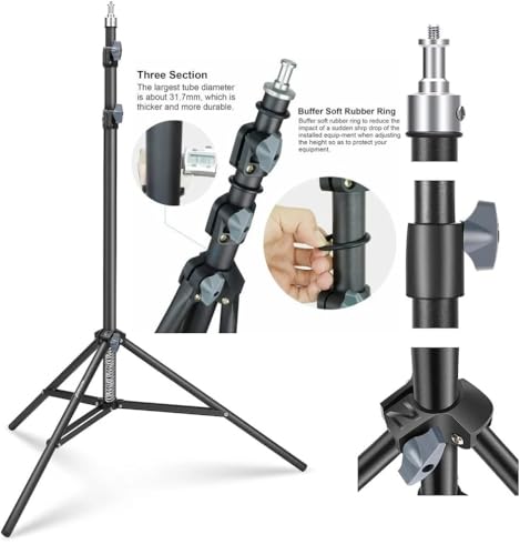 - 2.13 م (800 جم) حامل ثلاثي القوائم شديد التحمل يتميز بهيكل معدني بالكامل مع خليط معدني من الألومنيوم المؤكسد، متين ومقاوم للتآكل. مع أقطار الأنبوب السميك في جميع الأقسام الثلاثة (28/25/22 ملم)، تتمتع بسعة تحميل قصوى تصل إلى 10 كجم ويمكنها بسهولة دعم مجموعة واسعة من معدات التصوير الفوتوغرافي. مثالي للتصوير في الاستوديو والهواء الطلق، يأتي بتصميم مزود بنابض وزنبرك عازل مدمج يحمي أجهزتك بفعالية من الصدمات عند فك حامل الإضاءة. قاعدة حامل ثلاثي القوائم مع اس بي ار.