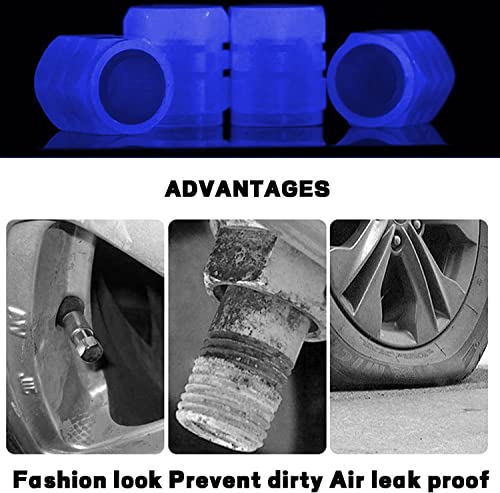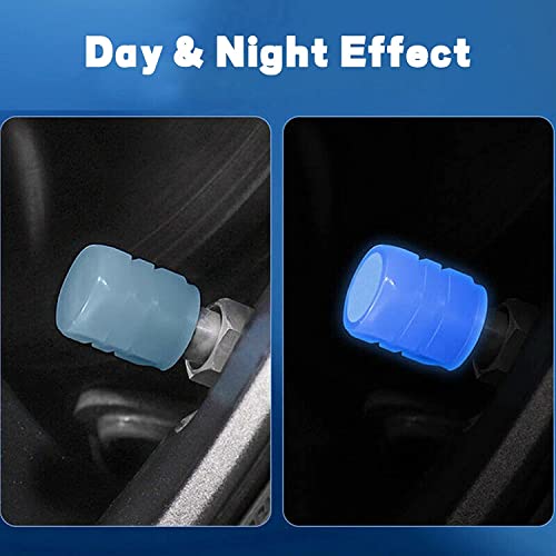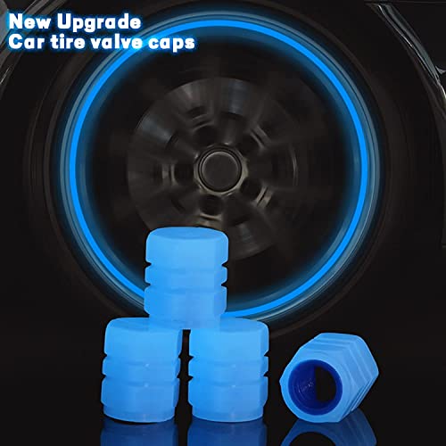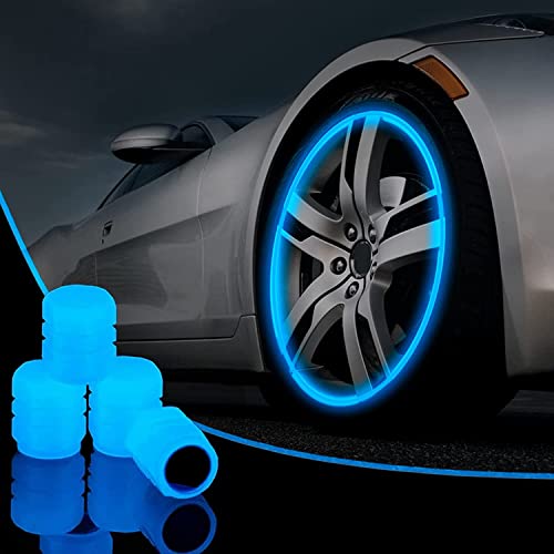 FLAFARY - أغطية صمامات هواء إطارات السيارة بتصميم فلورسنت وملاءمة عالمية، متينة وتتوهج في الظلام، للسيارات والموتوسيكلات وسيارات الدفع الرباعي والشاحنات والدراجات (لون أزرق، 4 قطع)