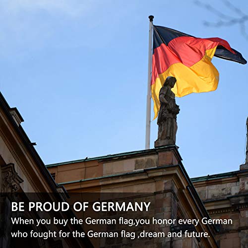 - فخر ألماني - ستندهش من جودة هذا العلم الفاخر المصنوع من النايلون المطرز ثقيل الوزن. مثالية لمنزل عائلتك الوطنية أو الشرفة أو الحديقة أو المكتب أو الداخل أو العشب الخارجي.