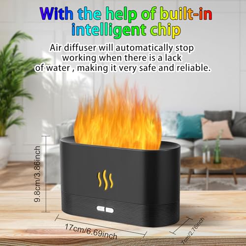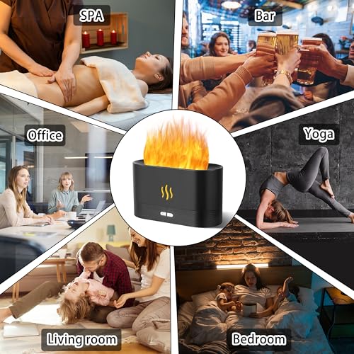 Unoutur - مرطب وموزع زيوت عطرية بتأثير لهب ناري وإضاءة بمستويين مع خاصية الإيقاف التلقائي للمنزل والمكتب والمنتجعات والجيم من اونوتور، لون أسود، سعة 180 مل