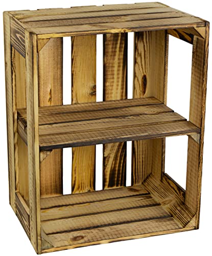 Kistenkolli Altes Land - خزانة كتب ملتهبة / ملتهبة - صندوق رف احذية مع لوح متوسط / حشوة لوح متوسط تقريبا. 50 × 40 × 30 سم / اقفاص تفاح وصناديق نبيذ خشبية من الارض القديمة (ملتهبة مفتوحة مع حشو)