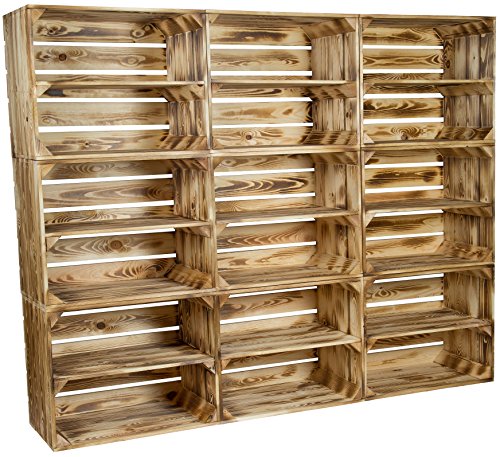Kistenkolli Altes Land - اقفاص فاكهة صلبة ملتهبة/ملتهبة كرف مع لوح متوسط / حشوة لوح متوسط 50 × 40 × 30 سم / اقفاص تفاح خشبية من التيس لاند (مجموعة من 9 قطع)