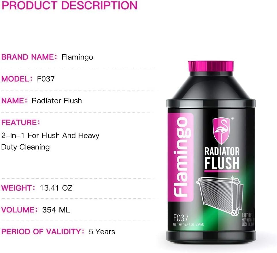 - Flamingo Radiator Flush هو سائل تبريد عالي الأداء وصديق للبيئة ولا يحتوي على BNAPS. مصمم خصيصًا لمنع الاحتراق والتشققات والتآكل لنظام تبريد السيارة. يوفر تشحيمًا ممتازًا للمضخة وأجزاء الختم والثرموستات، وحماية خاصة لمحرك السيارة مصنوع من سبائك الألومنيوم أو يعمل في درجة حرارة عالية