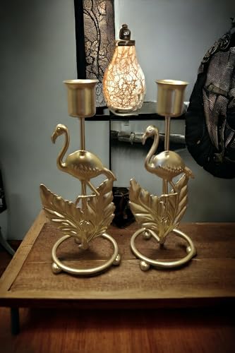 - حامل شموع معدني بتصميم فلامنجو لديكور المنزل.