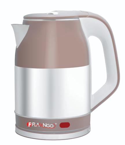 FLAMNGO - غلاية كهربائية من فلامينجو باللون البني، مصنوعة من الفولاذ غير القابل للصدأ، سهلة التنظيف ومتينة، سعة 2.5 لتر