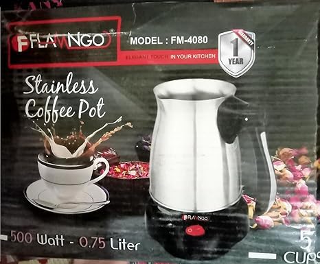 Generic - سبرتاية قهوة تركي كهرباء من الفولاذ المقاوم للصدأ بقاعدة منفصلة 500 واط - سعة 0.75 مل