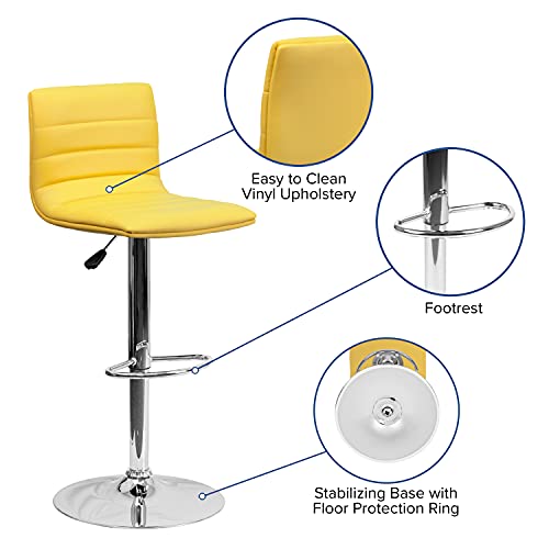 Flash Furniture - فلاش فيرنتشر CH-92023-1-YEL-GG ظهر من الفينيل الاصفر الحديث قابل للتعديل، مقعد دوار بارتفاع المنضدة مع قاعدة من الكروم، عبوة واحدة