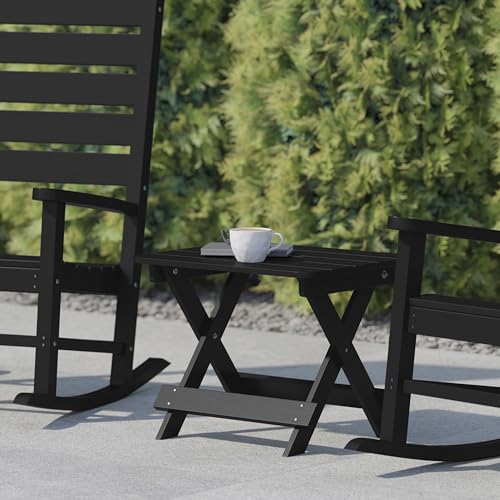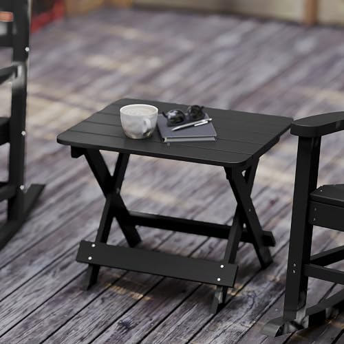 Flash Furniture - طاولة جانبية هاليفاكس اديرونداك قابلة للطي ومناسبة لجميع الأحوال الجوية من فلاش فيرنتشر، مجموعة من قطعة واحدة، لون أسود