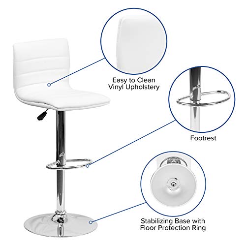 Flash Furniture - مقعد بار فينسنت حديث بارتفاع قابل للتعديل مع مسند قدم وتبطين في منتصف الظهر من فلاش فيرنتشر، قضيب منجد من الفينيل/ بارتفاع المنضدة، أبيض/كروم