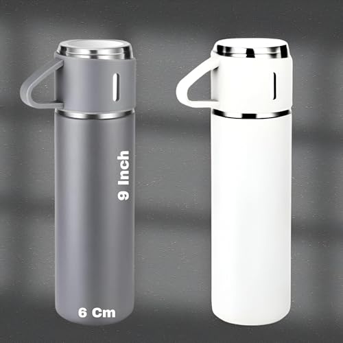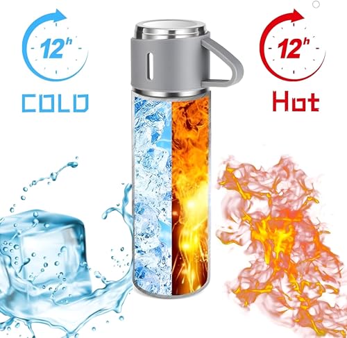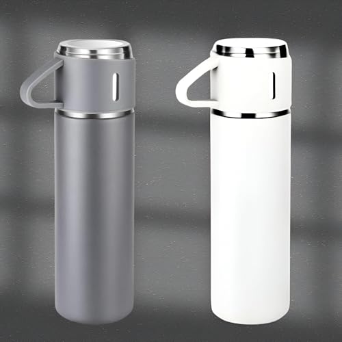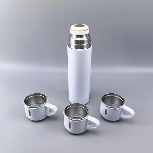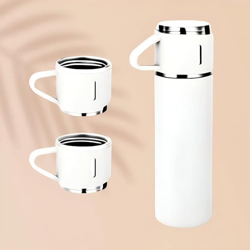 Generic - مجموعة ترمس حراري للمشروبات الساخنة والباردة، زجاجة مياه معزولة بتفريغ الهواء مع 3 أكواب مثالية للأنشطة الداخلية والخارجية، سعة 500 مل، لون أبيض