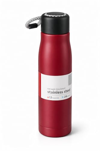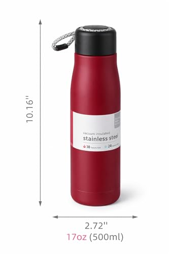 Generic - زجاجة مياه بغطاء محمول من الستانلس ستيل المعزول بتفريغ الهواء | قابلة لاعادة الاستخدام ومضادة للتسرب وخالية من BPA | 17 اونصة، اسود (بورغندي مات)