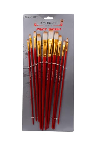 Generic - مجموعة فرش طلاء بشعيرات مسطحة، 10 قطع - احمر