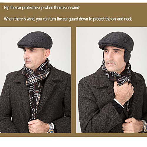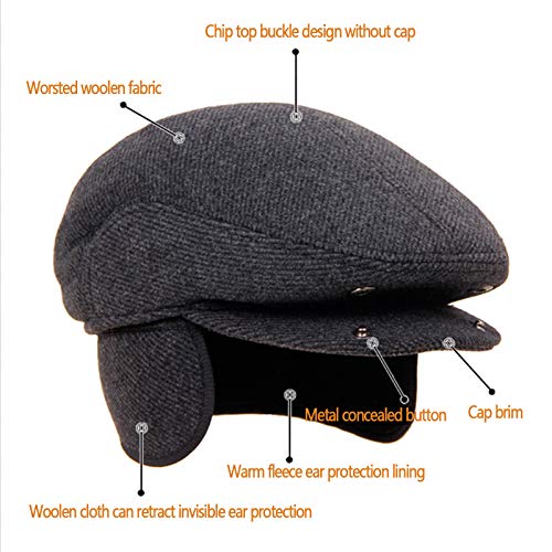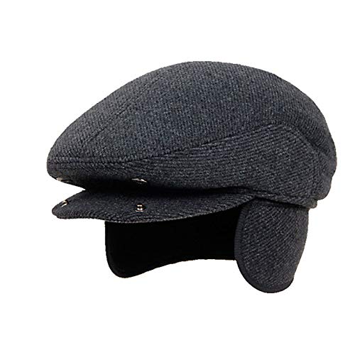 Generic - كاب بطرف مسطح للرجال من الصوف، طاقية مدببة مخملية مبطنة بالقطن، طاقية شتوية صوفية للخريف والشتاء للرجال