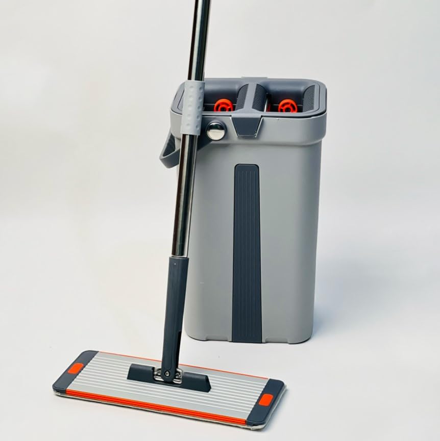 Generic - ممسحة مسطحة ونظام جردل بتصميم ذاتي العصر، دلو مزدوج الحجرة، رمادي وبرتقالي