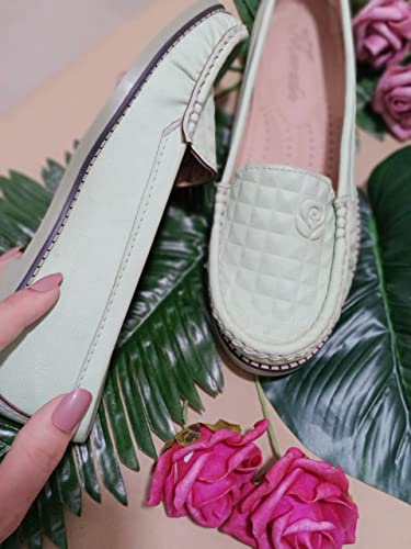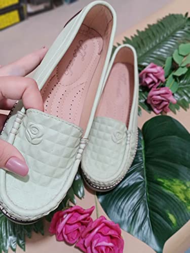 Generic - حذاء لوفر فلات سهل الارتداء ذو نمط كاجوال عصري بتصميم طبي ومريح من الجلد الصناعي مزين بنقشة زهور