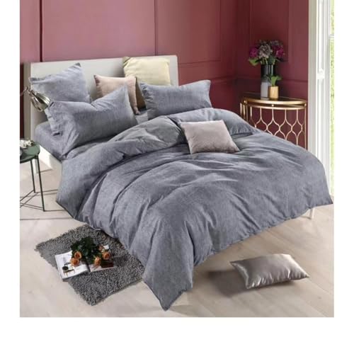 Generic - ملاءة مسطحة قطن 100% لسرير مقاس كينج، لون رمادي و4 كيس مخدة