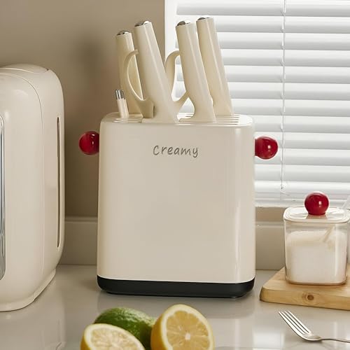 - يوفر المنتج مساحة مناسبة للسكاكين، بما في ذلك تلك ذات التصميم النحيف