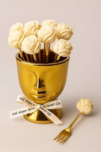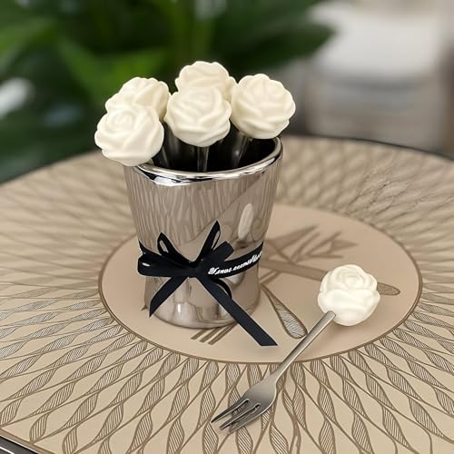 Generic - ادوات مائدة - مجموعة شوك حلوى من الستانلس ستيل تتميز برؤوس ورد أنيقة، حامل بورسلين لتقديم عملي، لمسة نهائية مضادة للصدأ لضمان المتانة لتناول الطعام المنزلي الأنيق