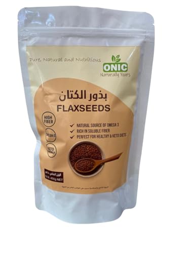 ONIC NATURALLY YOURS - بذور الكتان عالية النقاء – 450 جم | طبيعية 100% وخالية من الإضافات | غنية بالأوميغا 3 والألياف | مثالية للكيتو، النباتيين، والأنظمة الصحية المتوازنة |