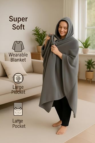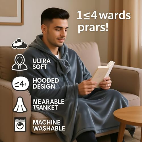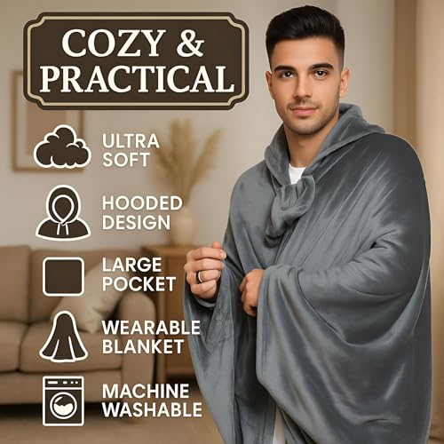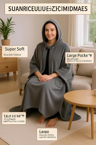 Generic - روب صوف - رداء بطانية بغطاء رأس عملاق للبالغين مصنوع من قماش الفلانيل الناعم لتوفير أقصى قدر من الدفء وحرية الحركة خلال أمسيات الشتاء أو العمل من المنزل أو عطلات نهاية الأسبوع البطيئة