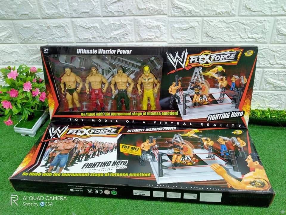 Generic - مجموعة ألعاب مصارعة من فلكس فورس، مصنوعة من البلاستيك، مناسبة للجنسين، تتضمن حلبة مصارعة كاملة مع ملحقات وأربع شخصيات. تساعد في تنمية مهارات اللعب التمثيلي والمهارات الاجتماعية