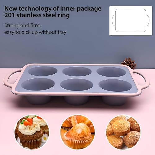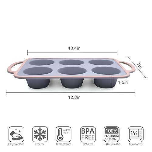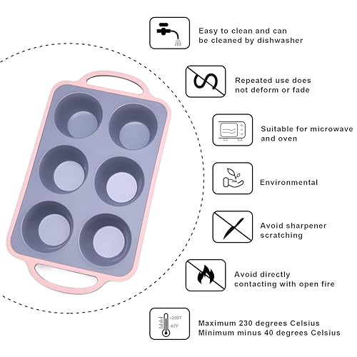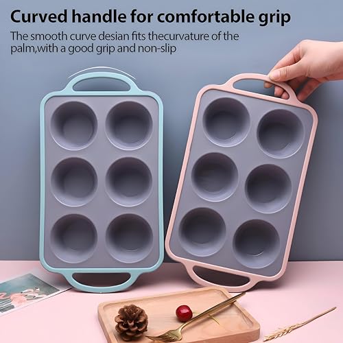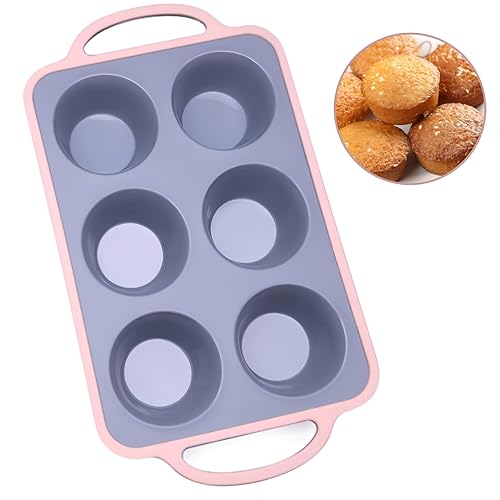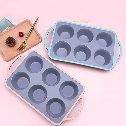 Generic - ادوات خبز مرنة - صينية مافن من السيليكون، 6 اكواب، مقابض مريحة، قالب خبز غير لاصق، مقاس 12.7 × 8.9 انش، لون بينك وازرق (بينك)