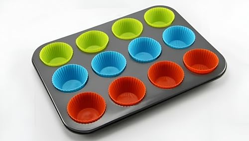 Generic - قالب كب كيك مرن - تصميم سيليكون مع قاعدة حديدية مطلية بالتفلون يضمن التبريد السريع وعدم الالتصاق، رائع للحفلات