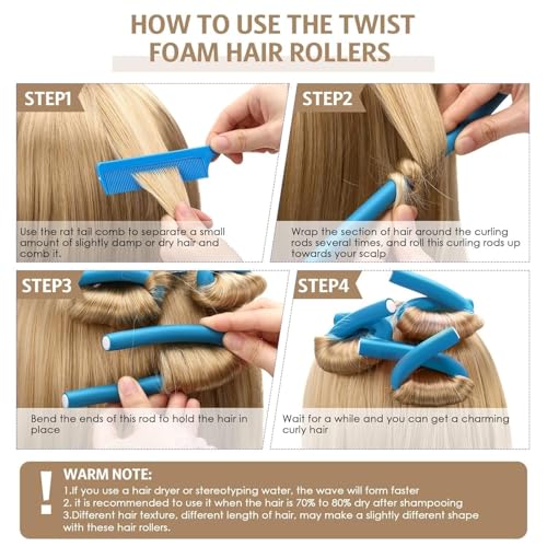 - سهلة الاستخدام: توفر طريقة بسيطة لاستخدام أدوات تجعيد الشعر الإسفنجية المرنة والمشط المدبب، ستحتاج فقط إلى الحفاظ على الشعر شبه جاف واستخدام المشط لفصل مجموعة صغيرة من الشعر، ولفها على قضيب تجعيد الشعر لتكوين دائرة ولفها في اتجاه فروة الرأس، وأخيرًا يمكنك ثني أطراف قضيب التجعيد لتثبيت الشعر، بعد فترة من الزمن، يمكنك فكها الحصول على تجعيدات شعر ساحرة